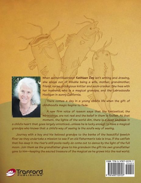 There comes a day in a young child's life when the gift of childhood's magic begins to fade. A new firm voice of reason says that the fantastical, the miraculous, are not real and the belief in them is foolish. At that moment, the lights of the world dim, there is a deep sadness in a child's heart that goes largely unnoticed...unless he is lucky enough to have a magical grandpa who knows that a child's way of seeing is the soul's way of seeing. Journey with a boy and his beloved grandpa to the banks of the beautiful Ipswich River as they undertake a mission to see if an old fisherman's tale is true, if the catfish that live deep in the river's still pools really do come out to dance by the light of the full moon. Join them as the grandfather gives to his grandson the gift his own grandfather gave to him-keeping the sacred treasure of the magical as he grows into the real world.