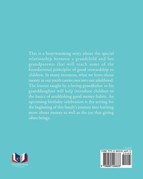 This is a heartwarming story about the special relationship between a grandchild and her grandparents that will teach some of the foundational principles of good stewardship to children. In many instances, what we learn about money in our youth carries over into our adulthood. The lessons taught by a loving grandfather to his granddaughter will help introduce children to the basics of establishing good money habits. An upcoming birthday celebration is the setting for the beginning of this family's journey into learning more about money as well as the joy that giving often brings.