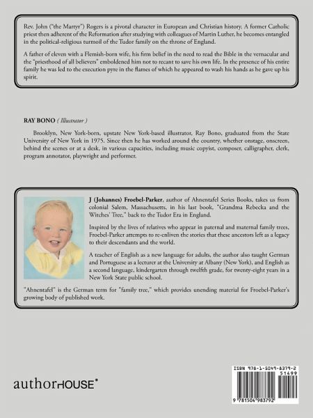 Rev. John ("the Martyr") Rogers is a pivotal character in European and Christian history. A former Catholic priest then adherent of the Reformation after studying with colleagues of Martin Luther, he becomes entangled in the political-religious turmoil of the Tudor family on the throne of England. A father of eleven with a Flemish-born wife, his firm belief in the need to read the Bible in the vernacular and the "priesthood of all believers" emboldened him not to recant to save his own life. In the presence of his entire family he was led to the execution pyre in the flames of which he appeared to wash his hands as he gave up his spirit.