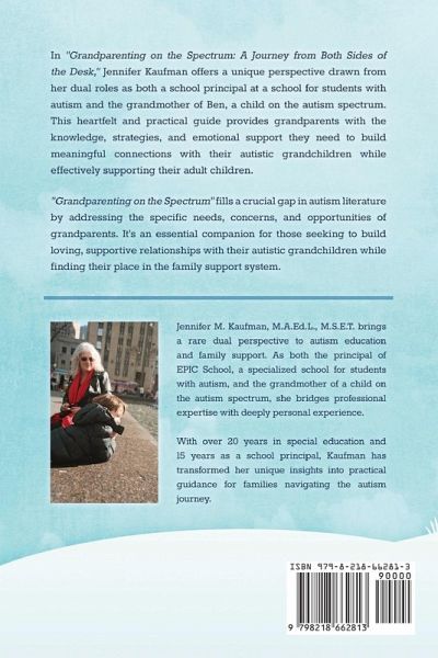 Bridge the gap between generations with "Grandparenting on the Spectrum," an essential guide for grandparents of autistic children. Drawing from her unique dual perspective as both a school principal for students with autism and a grandmother of a child with Level 2 autism, Jen provides practical strategies and heartfelt insights to help grandparents build meaningful connections with their autistic grandchildren. Discover how to transform uncertainty into confident connection as you learn to:Understand autism through both professional expertise and personal experience Create comfortable, joyful interactions that honor your grandchild's unique needs Support your adult children without overstepping boundaries Navigate family gatherings and special occasions with confidence Find new ways to express love that truly resonate with your grandchild With autism now affecting 1 in 36 children, grandparents represent a critical but often overlooked support system for families. This book fills the gap in autism resources by addressing the specific challenges and opportunities grandparents face. "Grandparenting on the Spectrum" combines evidence-based strategies with real-life examples to guide you through both the practical skills and emotional journey of supporting your autistic grandchild. Whether you're just beginning this journey or looking to deepen an existing connection, you'll find valuable insights that acknowledge the unique role of grandparents in the autism family system. Transform your relationship with your autistic grandchild and become the supportive presence both they and their parents need.