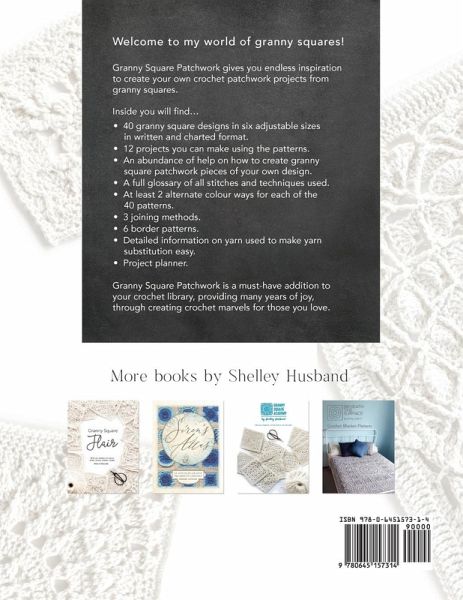 Welcome to my world of granny squares! Granny Square Patchwork gives endless inspiration to create your own crochet patchwork projects from granny squares. Inside you will find...40 granny square designs in six adjustable sizes in written and charted format. 12 projects you can make using the patterns. An abundance of help how to create granny square patchwork pieces of your own design. A full glossary of all stitches and techniques used. At least 2 alternate colour ways for each of the 40 patterns. 3 joining methods. 6 border patterns. Detailed yarn used information to make yarn substitution easy. Project planning grid. Granny Square Patchwork is a must have addition to your crochet library, providing many years of joy, creating crochet marvels for those you love.