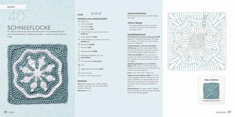 Die Modelle reichen dabei von luftig und leicht für die warmen Jahreszeiten bis hin zu dickeren und wärmeren Designs für die zweite Jahreshälfte und das beste daran: dank des durchgängigen 15 x 15 cm Formats können Sie alle Quadrate nach Lust und Laune miteinander kombinieren!