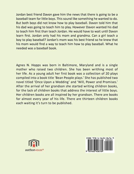 Jordan best friend Davon gave him the news that there is going to be a baseball team for little boys. This sound like something he wanted to do. But both boys did not know how to play baseball. Davon told him that his dad was going to teach him to play. However Davon wanted his dad to teach him first than teach Jordan. He would have to wait until Davon learn first. Jordan only had his mom and grandma. Can a girl teach a boy to play baseball? Jordan's mom was his best friend so he knew that his mom would find a way to teach him how to play baseball. What he needed was a baseball book.