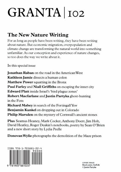 As long as people have been writing, they have been writing about nature. But nature - as we know it - is changing. Instead of providing a respite from the urban landscape, the natural world now reflects our mistakes. As our conception and experience of nature changes, so too does the way we write about it. GRANTA 102 will be a seminal collection, addressing lost worlds, vanishing species and the popularisation of man-made art intended to replicate the aesthetic experiences we once found in the wild. Contributors include Robert Macfarlane, Jonathan Raban, Richard Mabey, Geoff Dyer, Nadine Gordimer and Isabel Hilton.