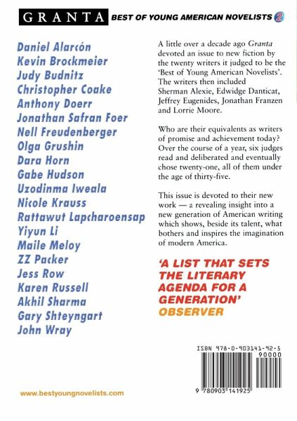 This issue features new work by the twenty writers that Granta's judges have selected as the most interesting new young voices in American fiction. In 1996, Granta's first Best of Young American Novelists included Jeffrey Eugenides, Jonathan Franzen and Lorrie Moore. Who will match them in the new generation?