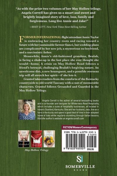 Former international flight attendant Annie Taylor is embracing her country roots and racing toward a future with her sustainable farmer fiancé, but wedding plans are complicated by her new job, a mysterious ex-boyfriend, and a narcissistic father. Meanwhile, Annie’s old-fashioned grandma, Beulah, is facing a shake-up in the last place she ever thought she would—home. A crisis on May Hollow Road follows a friend’s betrayal, challenging Beulah’s forgiving nature. An unwelcome diet, a new houseguest, and a possible overseas trip will all stretch her spirit—if she lets it. Granted takes readers from the comforts of the Kentucky countryside to old-world Tuscany with a cast of memorable characters. Granted follows Grounded and Guarded in the May Hollow Trilogy.
