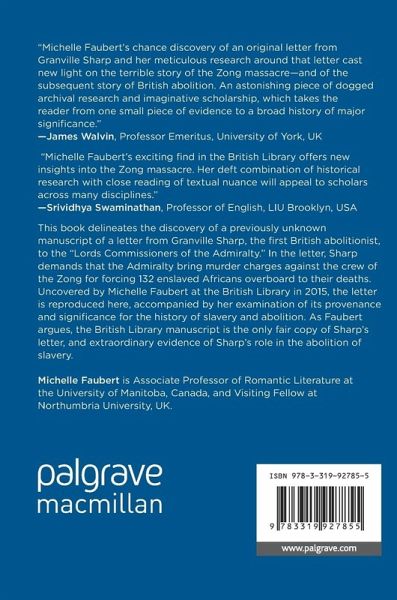 This book delineates the discovery of a previously unknown manuscript of a letter from Granville Sharp, the first British abolitionist, to the "Lords Commissioners of the Admiralty." In the letter, Sharp demands that the Admiralty bring murder charges against the crew of the Zong for forcing 132 enslaved Africans overboard to their deaths. Uncovered by Michelle Faubert at the British Library in 2015, the letter is reproduced here, accompanied by her examination of its provenance and significance for the history of slavery and abolition. As Faubert argues, the British Library manuscript is the only fair copy of Sharp's letter, and extraordinary evidence of Sharp's role in the abolition of slavery.