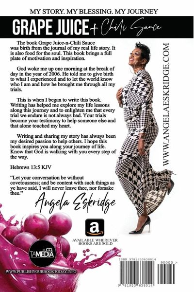 The book Grape Juice-n-Chili Sauce was birth from the journal of my real life story. It is also food for the soul. This book brings a full plate of motivation and inspiration. God woke me up one morning at the break of day in the year of 2006. He told me to give birth to what I experienced and to let the world know who I am and how he brought me through all my trails! This is when I began to write this book. Writing has helped me explore my life lessons along this journey and to enlighten me that every trial we endure is not always bad. Don't despise small beginnings. Your trials become your…mehr