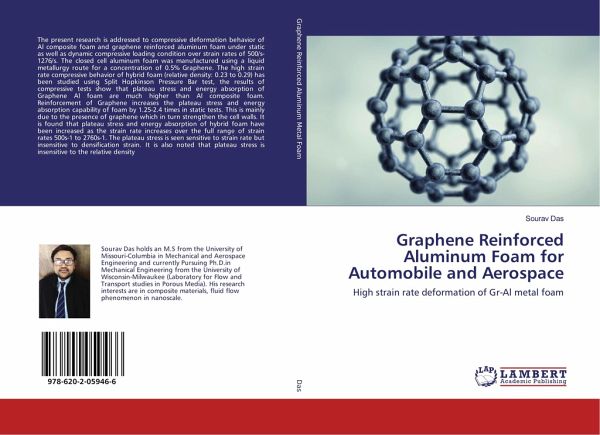 The present research is addressed to compressive deformation behavior of Al composite foam and graphene reinforced aluminum foam under static as well as dynamic compressive loading condition over strain rates of 500/s-1276/s. The closed cell aluminum foam was manufactured using a liquid metallurgy route for a concentration of 0.5% Graphene. The high strain rate compressive behavior of hybrid foam (relative density: 0.23 to 0.29) has been studied using Split Hopkinson Pressure Bar test, the results of compressive tests show that plateau stress and energy absorption of Graphene Al foam are much higher than Al composite foam. Reinforcement of Graphene increases the plateau stress and energy absorption capability of foam by 1.25-2.4 times in static tests. This is mainly due to the presence of graphene which in turn strengthen the cell walls. It is found that plateau stress and energy absorption of hybrid foam have been increased as the strain rate increases over the full range of strain rates 500s¿1 to 2760s¿1. The plateau stress is seen sensitive to strain rate but insensitive to densification strain. It is also noted that plateau stress is insensitive to the relative density