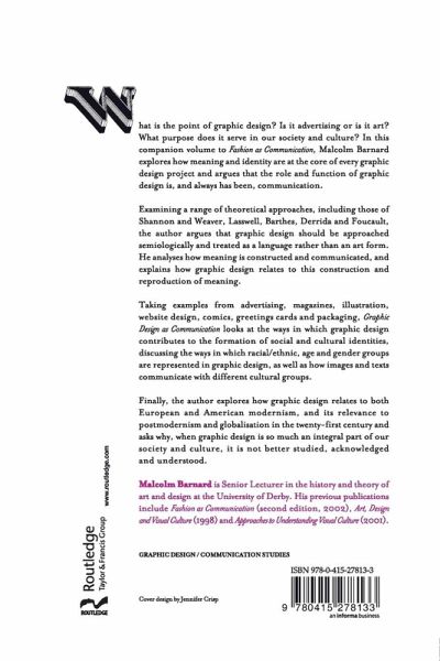 What is the point of graphic design? Is it advertising or is it art? What purpose does it serve in our society and culture? Malcolm Barnard explores how meaning and identity are at the core of every graphic design project and argues that the role and function of graphic design is, and always has been, communication. Drawing on a range of theoretical approaches including those of Derrida, Saussure, Foucault, and Barthes, and taking examples from advertising, magazines, illustration, website design, comics, greetings cards and packaging, Graphic Design as Communication looks at how graphic design contributes to the formation of social and cultural identities. Malcolm Barnard discusses the ways in which racial/ethnic groups, age groups and gender groups are represented in graphic design, as well as how images and texts communicate with different cultural groups. He also explores how graphic design relates to both European and American modernism, and its relevance to postmodernism and globalisation in the twenty-first century and asks why, when graphic design is such an integral part of our society and culture, it is not acknowledged and understood in the same way that art is.