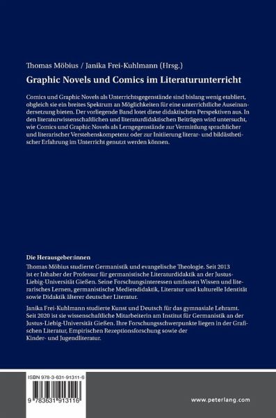 Vorwort - (1) Thomas Möbius: Zur Glaubwürdigkeit von erinnerter Vergangenheit in Nora Krugs Heimat und Barbara Yelins Emmie Arbel. Die Farbe der Erinnerung - (2) Janika Frei-Kuhlmann: Adaptionsstrategien in Graphic Novels: Eine literaturdidaktische Untersuchung der Literaturadaption Woyzeck - (3) Renata Behrendt: Über die Notwendigkeit, comicspezifische Lesekompetenz im Deutschunterricht zu fördern. Lesedidaktische Überlegungen am Beispiel von Reinhard Kleists Knock Out! - (4) Anna Rebecca Hoffmann: Hybride Formen der Graphic Novel zwischen fiktionaler und Sachliteratur - (5) Caroline Wittig: Comics gemeinsam lesen und (digital) inszenieren. Literaturdidaktische Überlegungen für die Grundschule - (6) Tihomir Engler/Florian Rauscher: Didaktisches Potential von identitätsstiftenden Erzählfacetten in Mawils Kinderland - (7) Tihomir Engler/Petra Zagar-Sostaric: Didaktische Potentiale grotesk-ironischer Vermittlung von sozialen Ungerechtigkeiten am Bespiel des Comics Alan Ford - (8) Jennifer Neumann: Comics und Graphic Novels - Komik in Text-Bild-Gefügen - (9) Ivo Steininger: Graphic Novels im Englischunterricht: Zu den fremdsprachendidaktischen Potentialen einer multimodalen Textsorte - (10) José Fernández Pérez: Anders sein oder der Punk im Schrank (2019). Graphic Novel im fächerübergreifenden Unterricht - (11) Melissa Sophie Heitzenröder: Potentiale und Funktionen der phantastischen Graphic Novel für den Literaturunterricht am Beispiel von Die Stadt der Träumenden Bücher von Walter Moers und Florian Biege - (12) Register - (13) Abstracts und Beiträgerinformationen