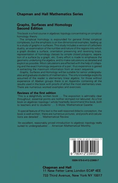 viii homology groups. A weaker result, sufficient nevertheless for our purposes, is proved in Chapter 5, where the reader will also find some discussion of the need for a more powerful in variance theorem and a summary of the proof of such a theorem. Secondly the emphasis in this book is on low-dimensional examples the graphs and surfaces of the title since it is there that geometrical intuition has its roots. The goal of the book is the investigation in Chapter 9 of the properties of graphs in surfaces; some of the problems studied there are mentioned briefly in the Introduction, which contains an in formal survey of the material of the book. Many of the results of Chapter 9 do indeed generalize to higher dimensions (and the general machinery of simplicial homology theory is avai1able from earlier chapters) but I have confined myself to one example, namely the theorem that non-orientable closed surfaces do not embed in three-dimensional space. One of the principal results of Chapter 9, a version of Lefschetz duality, certainly generalizes, but for an effective presentation such a gener- ization needs cohomology theory. Apart from a brief mention in connexion with Kirchhoff's laws for an electrical network I do not use any cohomology here. Thirdly there are a number of digressions, whose purpose is rather to illuminate the central argument from a slight dis tance, than to contribute materially to its exposition.
