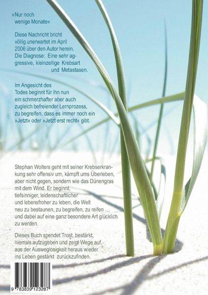 »Nur noch wenige Monate« Diese Nachricht bricht völlig unerwartet im April 2006 über den Autor herein. Die Diagnose: Eine sehr aggressive, kleinzellige Krebsart und Metastasen. Im Angesicht des Todes beginnt für ihn nun ein schmerzhafter aber auch zugleich befreiender Lernprozess, zu begreifen, dass es immer noch ein »Jetzt« oder »Jetzt erst recht« gibt.Stephan Wolters geht mit seiner Krebserkrankung sehr offensiv um, kämpft ums Überleben, aber nicht gegen, sondern wie das Dünengras mit dem Wind. Er beginnt, tiefsinniger, leidenschaftlicher und lebensfroher zu leben, die Welt neu zu bestaunen, zu begreifen, zu reifen ... und dabei auf eine ganz besondere Art glücklich zu werden. Seine Briefe und Notizen spenden Trost, bestärken, niemals aufzugeben und zeigen Sichtweisen und Wege auf, aus der Ausweglosigkeit heraus wieder ins Leben gestärkt zurückzufinden.