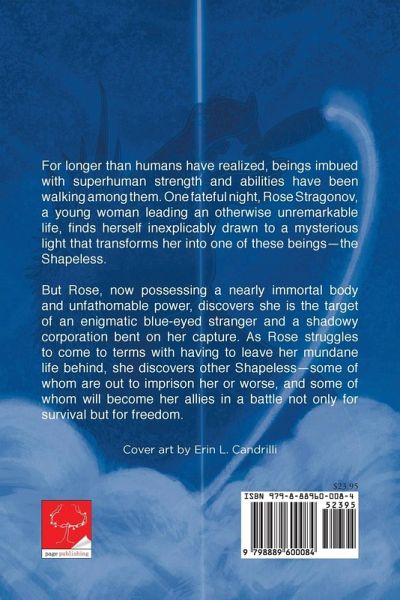 For longer than humans have realized, beings imbued with superhuman strength and abilities have been walking among them. One fateful night, Rose Stragonov, a young woman leading an otherwise unremarkable life, finds herself inexplicably drawn to a mysterious light that transforms her into one of these beings--the Shapeless. But Rose, now possessing a nearly immortal body and unfathomable power, discovers she is the target of an enigmatic blue-eyed stranger and a shadowy corporation bent on her capture. As Rose struggles to come to terms with having to leave her mundane life behind, she discovers other Shapeless--some of whom are out to imprison her or worse, and some of whom will become her allies in a battle not only for survival but for freedom.