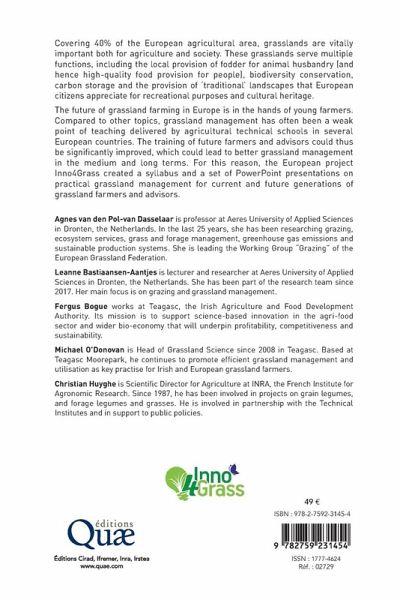 Covering 40% of the European agricultural area, grasslands are vitally important both for agriculture and society. These grasslands serve multiple functions, including the local provision of fodder for animal husbandry (and hence high-quality food provision for people), biodiversity conservation, carbon storage and the provision of 'traditional' landscapes that European citizens appreciate for recreational purposes and cultural heritage. The future of grassland farming in Europe is in the hands of young farmers. Compared to other topics, grassland management has often been a weak point of teaching delivered by agricultural technical schools in several European countries. The training of future farmers and advisors could thus be significantly improved, which could lead to better grassland management in the medium and long terms. For this reason, the European project Inno4Grass created a syllabus and a set of PowerPoint presentations on practical grassland management for current and future generations of grassland farmers and advisors.