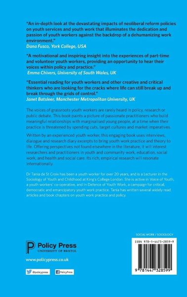 Dr. Tania de St Croix has been a youth worker for over twenty years, and is a Lecturer in the Sociology of Youth and Childhood at King's College London. She is active in Voice of Youth, a youth workers' co-operative, and In Defence of Youth Work, a campaign for critical, democratic and emancipatory youth work practice. Tania has written several widely-read articles and book chapters on youth work practice and policy.