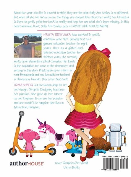 Most five-year-olds live in a world in which they are the star. Sally Ann Smiley is no different. But when all she can focus on are the things she doesn't like about her world, her Grandpa is there to gently guide her back to reality and help her see what she's been missing. In this heart-warming book, Sally Ann Smiley gets a Gratitude Adjustment.