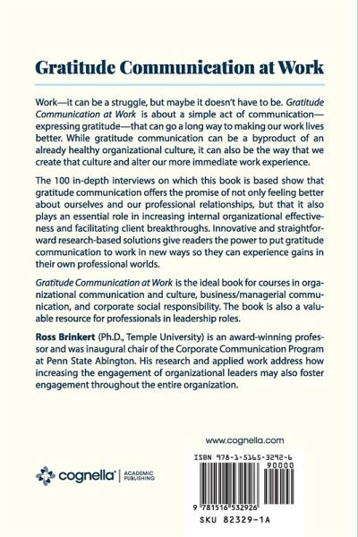 "Work - it can be a struggle, but maybe it doesn't have to be. Gratitude communication at work is about a simple act of communication - expressing gratitude - that can go a long way to making our work lives better. While gratitude communication can be a byproduct of an already healthy organizational culture, it can also be the way that we create that culture and alter our more immediate work experience.The 100 in-depth interviews on which this book is based show that gratitude communication offers the promise of not only feeling better about ourselves and our professional relationships, but that it also plays an essential role in increasing internal organizational effectiveness and facilitating client breakthroughs. Innovative and straightforward research-based solutions give readers the power to put gratitude communication to work in new ways so they can experience gains in their own professional worlds.Gratitude Communication at Work is the ideal book for courses in organizational communication and culture, business/managerial communication, and corporate social responsibility."--Back cover.
