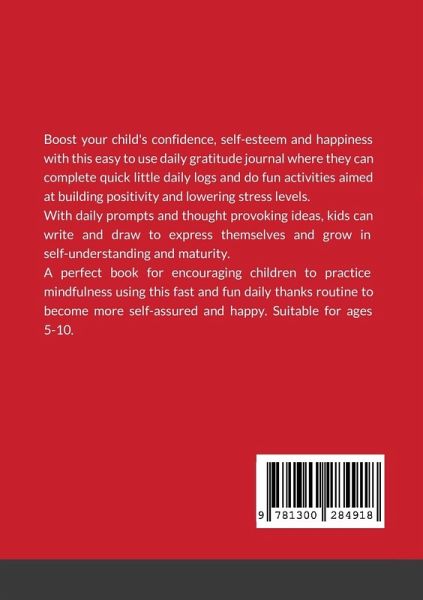 Boost your child's confidence, self-esteem and happiness with this easy to use daily gratitude journal where they can complete quick little daily logs and do fun activities aimed at building positivity and lowering stress levels. With daily prompts, fun activities and thought provoking ideas, kids can write and draw to express themselves and grow in self-understanding and maturity. A perfect book for encouraging children to practice mindfulness using this fast and fun daily thanks routine to become more self-assured and happy. Parents and children will definitely enjoy reading the thoughts and memories within this little journal in years to come. This little book is A5 sized, making it ideal to fit in your child's bag. Suitable for ages 5-10.