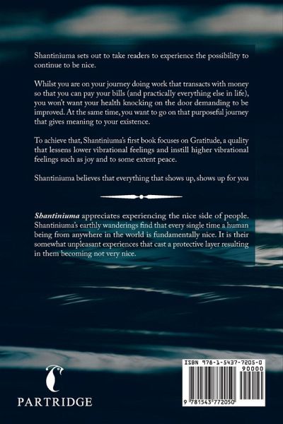 Shantiniuma sets out to take readers to experience the possibility to continue to be nice. Whilst you are on your journey doing work that transacts with money so that you can pay your bills (and practically everything else in life), you won't want your health knocking on the door demanding to be improved. At the same time, you want to go on that the purposeful journey that gives meaning to your existence. To achieve that, Shantiniuma's first book focuses on Gratitude, a quality that lessens lower vibrational feelings and instill higher vibrational feelings such as joy and to some extent peace. Shantiniuma believes that everything that shows up, shows up for you