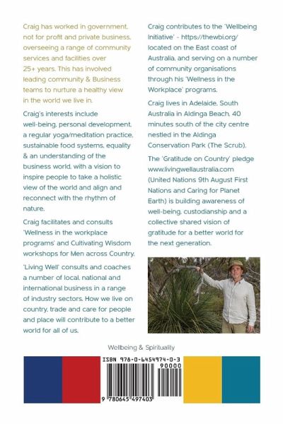 Craig has worked in government, not for profit and private business, overseeing a range of community services and facilities over 25+ years. This has involved leading community & Business teams to nurture a healthy view in the world we live in. Craig's interests include well-being, personal development, a regular yoga/meditation practice, sustainable food systems, equality & an understanding of the business world, with a vision to inspire people to take a holistic view of the world and align and reconnect with the rhythm of nature. Craig facilitates and consults 'Wellness in the workplace programs' and Cultivating Wisdom workshops for Men across Country. 'Living Well' consults and coaches a number of local, national and international business in a range of industry sectors. How we live on country, trade and care for people and place will contribute to a better world for all of us. Craig contributes to the 'Wellbeing Initiative' - https://thewbi.org/ located on the East coast of Australia, and serving on a number of community organisations through his 'Wellness in the Workplace' programs. Craig lives in Adelaide, South Australia in Aldinga Beach, 40 minutes south of the city centre nestled in the Aldinga Conservation Park (The Scrub). The 'Gratitude on Country' pledge www.livingwellaustralia.com (United Nations 9th August First Nations and Caring for Planet Earth) is building awareness of well-being, custodianship and a collective shared vision of gratitude for a better world for the next generation