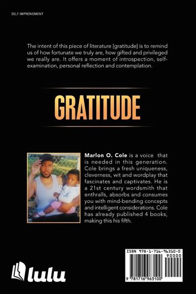The intent of this piece of literature [gratitude] is to remind us of how fortunate we truly are, how gifted and privileged we really are. It offers a moment of introspection, self-examination, personal reflection and contemplation.