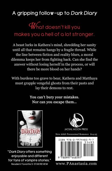 A gripping follow-up to Dark Diary. What doesn't kill you makes you a hell of a lot stronger. A beast lurks in Kathera's mind, shredding her sanity until all that remains hangs by a fragile thread. While the line between fiction and reality blurs, a moral dilemma keeps her from fighting back. Can she find the answer without losing herself in the process, or will there be more blood on her hands? With burdens too grave to bear, Kathera and Matthaya must grapple vengeful ghosts from their pasts and lay their demons to rest. But you can't bury your mistakes. Nor can you escape them…