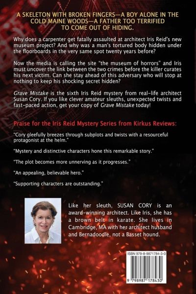 A skeleton with broken fingers-a boy alone in the cold Maine woods-a father too terrified to come out of hiding. Why does a carpenter get fatally assaulted at architect Iris Reid's new museum project? And why was a man's tortured body hidden under the floorboards in the very same spot twenty years before? Now the media is calling the site "the museum of horrors" and Iris must uncover the link between the two crimes before the killer curates his next victim. Can she stay ahead of this adversary who will stop at nothing to keep his shocking secret hidden? Grave Mistake is the sixth Iris Reid mystery from real-life architect Susan Cory. If you like clever amateur sleuths, unexpected twists and fast-paced action, get your copy of Grave Mistake today! Praise for the Iris Reid Mystery Series from Kirkus Reviews: "Cory gleefully breezes through subplots and twists with a resourceful protagonist at the helm." "Mystery and distinctive characters hone this remarkable story." "The plot becomes more unnerving as it progresses." "An appealing, believable hero."