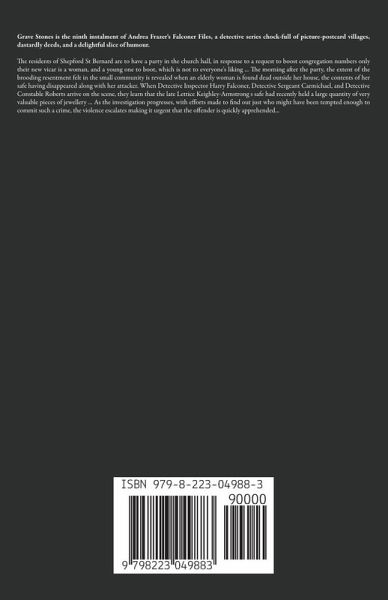 Grave Stones is the ninth instalment of Andrea Frazer's Falconer Files, a detective series chock-full of picture-postcard villages, dastardly deeds, and a delightful slice of humour. The residents of Shepford St Bernard are to have a party in the church hall, in response to a request to boost congregation numbers only their new vicar is a woman, and a young one to boot, which is not to everyone's liking ... The morning after the party, the extent of the brooding resentment felt in the small community is revealed when an elderly woman is found dead outside her house, the contents of her safe having disappeared along with her attacker. When Detective Inspector Harry Falconer, Detective Sergeant Carmichael, and Detective Constable Roberts arrive on the scene, they learn that the late Lettice Keighley-Armstrong s safe had recently held a large quantity of very valuable pieces of jewellery ... As the investigation progresses, with efforts made to find out just who might have been tempted enough to commit such a crime, the violence escalates making it urgent that the offender is quickly apprehended...
