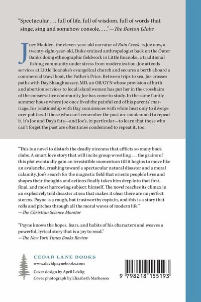Joey Madden, the eleven-year-old narrator of Ruin Creek, is Joe now, a twenty-eight-year-old, Duke-trained anthropologist back on the Outer Banks doing ethnographic fieldwork in Little Roanoke, a traditional fishing community under stress from modernization. Attending services at Little Roanoke's evangelical church, Joe secures a berth aboard a commercial trawl boat called the Father's Price. Between trips to sea, Joe crosses paths with Day Shaughnessey, MD, an OB/GYN whose provision of birth and abortion services to local island women has put her in the crosshairs of the conservative community Joe has come to study. In the same family summer house where Joe once lived the painful end of his parents' marriage, his relationship with Day now begins. As they converge romantically, however, Joe and Day increasingly diverge on politics. If those who can't remember the past are condemned to repeat it, it's Joe and Day's fate-and Joe's, in particular-- to learn that those who can't forget the past are oftentimes condemned to repeat it, too.