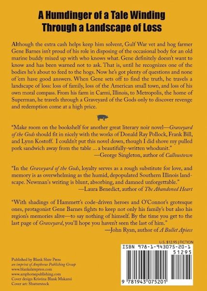 Although the extra cash helps keep him solvent, hog farmer Gene Barnes isn't proud of his role in disposing of the occasional body for an old Marine buddy mixed up with who knows what. Gene definitely doesn't want to know and has been warned not to ask. That is, until he recognizes one of the bodies he's about to feed to the hogs. Now he's got plenty of questions and none of 'em have good answers. When Gene sets off to find the truth, he travels a landscape of loss: loss of family, loss of the American small town, and loss of his own moral compass. From his farm in Carmi, Illinois, to Metropolis, the home of Superman, he travels through a Graveyard of the Gods only to discover revenge, and redemption comes at a high price. In his debut novel, poet, playwright, and River Styx editor Richard Newman tells a humdinger of a tale that begins in the cornfields along the silty banks of the Wabash River and brushes with ghosts of his family's past, the nursing home where his deranged mother lives, Ohio River pirates near Cave-in-Rock, and the destruction of the small-town American and the Midwestern family farm through corporate greed before a final showdown in Garden of the Gods park of the Shawnee National Forest.