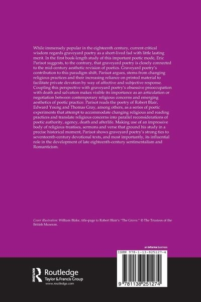 In the first book-length study of this important poetic mode, Parisot suggests that graveyard poetry is closely connected to the mid-eighteenth-century aesthetic revision of poetics. Parisot reads poetry by Robert Blair, Edward Young and Thomas Gray as a series of poetic experiments that attempt to accommodate changing religious and reading practices and translate religious concerns about death and salvation into parallel reconsiderations of poetic authority, agency, death and afterlife.
