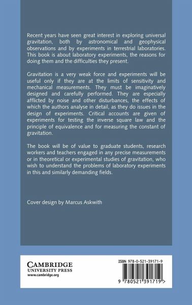 This book provides an up-to-date account of the precise experiments used to explore the nature of universal gravitation that can be performed in a terrestrial laboratory. The experiments required are at the limits of sensitivity of mechanical measurements. The problems of experiment design are discussed, and critical accounts given of the principal experiments testing the inverse square law and the principle of equivalence, and measuring the constant of gravitation. An analysis of the effects of noise and other disturbances is also provided, further highlighting the care that is needed in experimental design and performance. The motivation for undertaking such experiments is also discussed. The book will be of value to graduate students, researchers and teachers who are engaged in either theoretical or experimental studies of gravitation, and who wish to understand the nature and problems of laboratory experiments in this field.