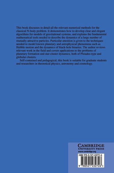 This book discusses in detail all the relevant numerical methods for the classical N-body problem. It demonstrates how to develop clear and elegant algorithms for models of gravitational systems, and explains the fundamental mathematical tools needed to describe the dynamics of a large number of mutually attractive particles. Particular attention is given to the techniques needed to model astrophysical phenomena such as close encounters and the dynamics of black hole binaries. The author reviews relevant work in the field and covers applications to the problems of planetary formation and star cluster dynamics, both of Pleiades type and globular clusters. Self-contained and pedagogical, this book is suitable for graduate students and researchers in theoretical physics, astronomy and cosmology.