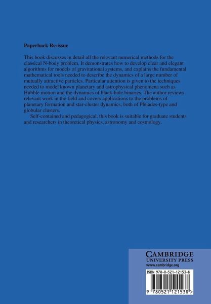 This book discusses in detail all the relevant numerical methods for the classical N-body problem. It demonstrates how to develop clear and elegant algorithms for models of gravitational systems, and explains the fundamental mathematical tools needed to describe the dynamics of a large number of mutually attractive particles. Particular attention is given to the techniques needed to model astrophysical phenomena such as close encounters and the dynamics of black hole binaries. The author reviews relevant work in the field and covers applications to the problems of planetary formation and star cluster dynamics, both of Pleiades type and globular clusters. Self-contained and pedagogical, this book is suitable for graduate students and researchers in theoretical physics, astronomy and cosmology.