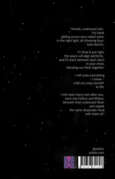Kinetic, undressed skin. My hand gliding across your naked spine. In the right light, all shivering boys look electric. If I time it just right, the space will align perfectly, and I'll reach between each atom in your chest, blending our flesh together. I will undo everything - I swear - until you sing yourself back to life. I will meet many men after you, each one hollow and lifeless beneath their undressed flesh, and repeat the same desperate ritual with them all. - PRAISE FOR "GRAVITY" "How could poetry about violent assault, about homophobia, about dysmorphia and more all sparkle so brightly? Ari Lohr's innovative language - and his charting of it - surprises reader skin like faraway fireworks. At just nineteen years old, he deals with heaviness with such light ease-and in Gravity, in such tight spaces, he's made us a banging breathtaker." - Pascale Potvin, author of SEX, GOD, & OCD (Really Serious Literature, 2023) "In Ari Lohr's stunning poetry collection Gravity, he explores a myriad of themes with vulnerability, urgency, and care, from the unspeakable violence committed against queer boys, to an ode to xyr teeth, to the tender ache of love poems penned to their lover Adam. I was left stunned and amazed by how he revealed and unspooled xyr words on the page, exploring the limits of single-word lines and sporadic, scattered phrases like staggered thoughts against the white. I'm eager for all readers to hold this collection in their hands soon, and for Ari to continue writing what they do best: telling stories through poetry and fearlessly making them known." - Sofía Aguilar, poet and author of STREAMING SERVICE: golden shovels made for tv and STREAMING SERVICE: season two "Gravity holds unyielding forces in its words: the crushing weight of an ever-expanding, ruthless universe, and death and love with the equal pull of their inevitability. Lohr navigates it all through a speaker who 'is always reaching back' while falling through these principles. Just like the collection named after it, Lohr confesses: 'gravity is a silent killer.'" - Sunny Vuong, editor-in-chief of Interstellar Literary Review