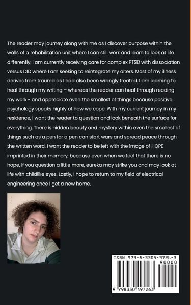 "Gray Black's Poetic Portrait" is an immersive and deeply personal collection that weaves together a rich tapestry of emotional landscapes, exploring the intricate web of trauma, recovery, identity, and the complexities of human experience. Written by Gray Black during a time of personal transformation, this collection reflects the author's journey through the trials of mental health, particularly complex PTSD and dissociative identity disorder (DID), offering an unfiltered look at the struggles and triumphs of healing. The poems within grapple with profound questions of self-worth, the nature of pain, and the paths to recovery, while also exploring themes of love, autonomy, societal expectations, and the fluidity of identity. Gray Black's writing is raw, vivid, and unapologetically honest, pulling readers into a world where personal and collective suffering are met with resilience and moments of hard-won clarity. From vivid depictions of childhood turmoil to striking allegories on mental illness and social alienation, each poem holds up a mirror to the human spirit's capacity to endure. Poems like "Forsaken Sheep" and "Being Ripped in Two" capture the intense inner battles of dissociation and societal rejection, while works such as "Electrifying Lithium" and "Democracy" tackle broader, philosophical questions about existence, science, and humanity's flawed systems. Gray Black also touches on themes of gender and sexual identity, with pieces like "Queer and Questioning" and "The Forbidden Lily" delving into the fluidity of attraction, self-discovery, and the search for acceptance in a world often hostile to difference. These poems speak candidly to LGBTQ+ experiences, underscoring the challenges and beauty of embracing one's true self. Throughout the collection, there is a persistent theme of rebirth and transformation, symbolized in both personal recovery and the transcendence of everyday struggles. "The Giving Witch" and "The Verbal Prostitute" use powerful imagery and metaphor to explore personal empowerment, while "Morning Star" and "Sacrificial Lamb" reflect on sacrifice, death, and the painful, yet necessary, journey toward wholeness. More than just a collection of poetry, "Gray Black's Poetic Portrait" serves as a form of literary therapy, not only for the author but for readers who may find solace in the shared experiences of vulnerability, struggle, and the search for inner peace. With themes that resonate universally-trauma, healing, identity, and hope-this work invites readers to look beyond the surface and find hidden beauty in life's darkest moments. "Gray Black's Poetic Portrait" is an emotional exploration, a beacon of hope, and an invitation to embrace the complexity of life, where pain and joy coexist, and healing is possible through reflection, creativity, and self-compassion.