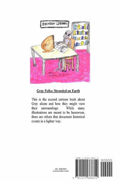 Gray Folks: Stranded on Earth This is the second cartoon book about Gray aliens and how they might view their surroundings. While many illustrations are meant to be humorous, there are others that document historical events in a lighter way.