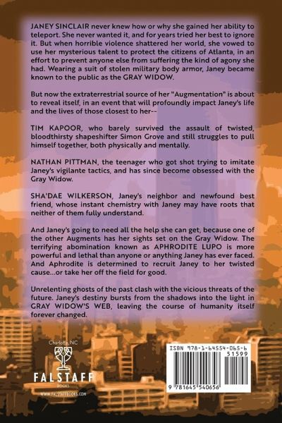 JANEY SINCLAIR's mission was supposed to be simple: use her mysteriously-gained ability to teleport, along with her martial arts skills and a suit of stolen military body armor, to prevent the people of Atlanta from suffering the same kind of pain and tragedy that haunt her own life. She's let it be known: the Gray Widow is watching. That mission has grown more complicated, however, thanks to the young man who's found his way into Janey's heart. For the first time since her husband was brutally taken from her, Janey has fallen in love - a love put almost immediately into grave danger. Because the hideous, terrifying abomination known as APHRODITE LUPO has set her sights on the Gray Widow. More powerful and lethal than anyone or anything Janey has ever faced, if Aphrodite can't recruit Janey to her twisted cause...she'll take her off the field for good. And in the midst of that life-or-death struggle, the extraterrestrial source of Janey's "augmentation" is about to arrive...as the fate of the planet itself comes to rest in Janey's gauntleted hands.
