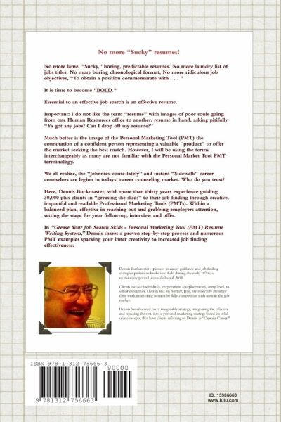 No more lame, "Sucky," boring, predictable resumes. Gone are inane job title laundry lists, chronological formats, ridiculous job objectives. It is time to become Bold! Important: The word"resume" projects images of poor souls going from one office to another, resume in hand, asking pitifully, "Ya got any jobs? Can I drop off my resume?" Better is the new Personal Marketing Tool (PMT) with connotations of confidence people representing a valuable "product", seeking the best match. With all the Johnny-come-latelies career counselor wannabes in the field - Who do you trust? Dennis Buckmaster, with 30+ years, experience guiding 30K+ clients in "greasing the skids" to their job finding through creative, impactful and readable PMTs. In a balanced plan, grabbing employers' attention, setting the stage for your follow-up, interview and offer. Dennis shares proven step-by-step method and PMT examples to spark your inner creativity.