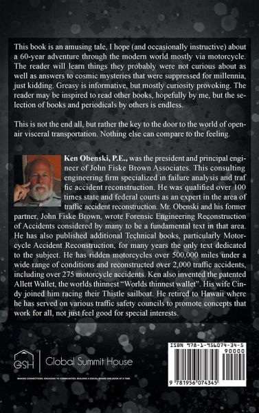 This book is an amusing tale, I hope (and occasionally instructive) about a 60-year adventure through the modern world mostly via motorcycle. The reader will learn things they probably were not curious about as well as answers to cosmic mysteries that were suppressed for millennia, just kidding. Greasy is informative, but mostly curiosity provoking. The reader may be inspired to read other books, hopefully by me, but the selection of books and periodicals by others is endless. This is not the end all, but rather the key to the door to the world of open-air visceral transportation. Nothing else can compare to the feeling.