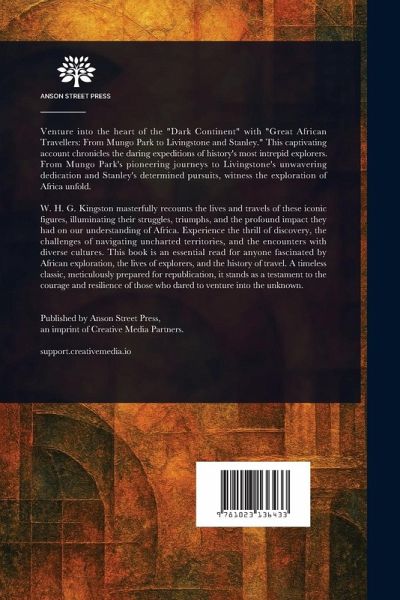 Venture into the heart of the "Dark Continent" with "Great African Travellers: From Mungo Park to Livingstone and Stanley." This captivating account chronicles the daring expeditions of history's most intrepid explorers. From Mungo Park's pioneering journeys to Livingstone's unwavering dedication and Stanley's determined pursuits, witness the exploration of Africa unfold. W. H. G. Kingston masterfully recounts the lives and travels of these iconic figures, illuminating their struggles, triumphs, and the profound impact they had on our understanding of Africa. Experience the thrill of discovery, the challenges of navigating uncharted territories, and the encounters with diverse cultures. This book is an essential read for anyone fascinated by African exploration, the lives of explorers, and the history of travel. A timeless classic, meticulously prepared for republication, it stands as a testament to the courage and resilience of those who dared to venture into the unknown. This work has been selected by scholars as being culturally important, and is part of the knowledge base of civilization as we know it. This work is in the public domain in the United States of America, and possibly other nations. Within the United States, you may freely copy and distribute this work, as no entity (individual or corporate) has a copyright on the body of the work. Scholars believe, and we concur, that this work is important enough to be preserved, reproduced, and made generally available to the public. We appreciate your support of the preservation process, and thank you for being an important part of keeping this knowledge alive and relevant.