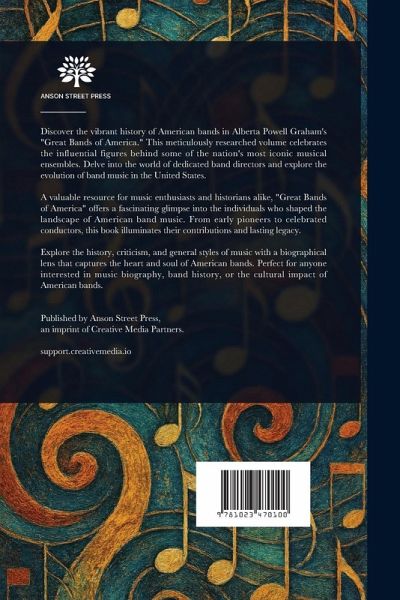 Discover the vibrant history of American bands in Alberta Powell Graham's "Great Bands of America." This meticulously researched volume celebrates the influential figures behind some of the nation's most iconic musical ensembles. Delve into the world of dedicated band directors and explore the evolution of band music in the United States. A valuable resource for music enthusiasts and historians alike, "Great Bands of America" offers a fascinating glimpse into the individuals who shaped the landscape of American band music. From early pioneers to celebrated conductors, this book illuminates…mehr