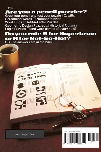 Hours of challenging puzzle fun can be found in this giant treasury of quizzes, word games, and brain teasers. Are you a pencil puzzler? Grab your pencil and test your puzzle IQ with scrambled words, number puzzles, word-finds, add-a-letter puzzles, geometric design puzzles, historical quizzes, logic puzzles, and word games of every kind!