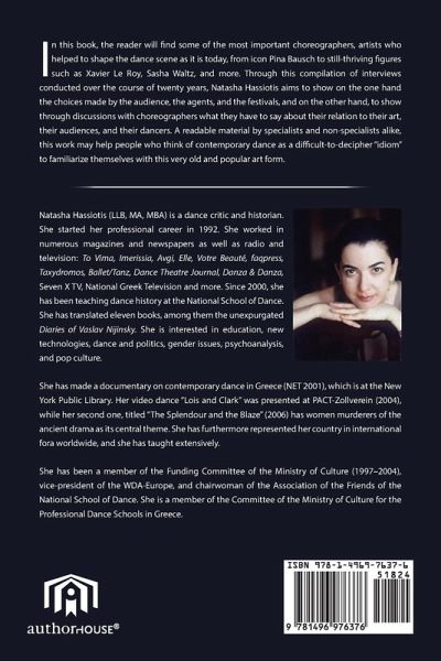 In this book, the reader will find some of the most important choreographers, artists who helped to shape the dance scene as it is today, from icon Pina Bausch to still-thriving figures such as Xavier Le Roy, Sasha Waltz, and more. Through this compilation of interviews conducted over the course of twenty years, Natasha Hassiotis aims to show on the one hand the choices made by the audience, the agents, and the festivals, and on the other hand, to show through discussions with choreographers what they have to say about their relation to their art, their audiences, and their dancers. A readable material by specialists and non-specialists alike, this work may help people who think of contemporary dance as a difficult-to-decipher "idiom" to familiarize themselves with this very old and popular art form.