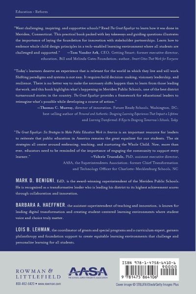 The Great Equalizer: Six Strategies to Make Public Education Work in America delves into the bleak reality of leading a district with a school poised for state takeover and a district with growing inequalities and increasing student needs. Learn how collaboration allowed that same district to become a 1:1 school system when K-12 schools were still dealing with technology roadblocks. Discover how public schools can garner philanthropy and foundation support to lead their districts down the road of excellence. Chapter hooks, key takeaways, and guided discussion questions provide a glimpse into the realities of leading public education systems across our nation. By implementing six strategies for success, public education can be innovative and make a difference for all students. Together we can ensure that America's public education system remains the great equalizer.