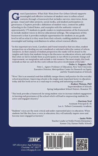 This book explores meaningful and effective use of student voice in urban school renewal efforts through strategies that include: surveys, interviews, focus groups, visual and video projects, social media, and student participation in governance. Chapters provide a definition of student voice, context for public schooling in the United States, and introduce a framework for including student voice in school renewal processes. Examples guide readers to implementation of the framework to include student voices in diverse educational settings. Authentic voices of approximately 175 students interviewed by the authors express what it is that they really want from public schools and how pre K-12 educators can provide a structure for ongoing student participation in governance and the work of the school. The existing literature explores student characteristics such as poverty, cultural diversity, and what the experts believe students need public schools to provide. Within the research, urban public schools and technical reform are often explored and examined separately from conversations about what students want from schools, excluding opportunities for their voices and diverse perspectives to be heard. Listening to students describe instances of bullying or teachers' low academic expectations provides educators with opportunities to address issues that impede student learning. The uniqueness of this framework for including student voice is that it provides multiple opportunities for students in any grade level to tell us what it is they want from public schools, and to make meaningful and lasting contributions to school renewal efforts.