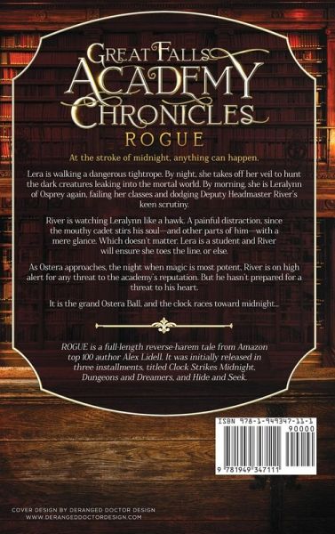 At the stroke of midnight, anything can happen.Lera is walking a dangerous tightrope. By night, she takes off her veil to hunt the dark creatures leaking into the mortal world. By morning, she is Leralynn of Osprey again, failing her classes and dodging Deputy Headmaster River's keen scrutiny.River is watching Leralynn like a hawk. A painful distraction, since the mouthy cadet stirs his soul-and other parts of him-with a mere glance. Which doesn't matter. Lera is a student and River will ensure she toes the line, or else.As Ostera approaches, the night when magic is most potent, River is on high alert for any threat to the academy's reputation. But he hasn't prepared for a threat to his heart.It is the grand Ostera Ball, and the clock races toward midnight...GREAT FALLS ROGUE, POWER OF FIVE BOOK 5, is a full-length reverse-harem omnibus novel from Amazon top 100 author Alex Lidell. It was initially released in three installments, titled Clock Strikes Midnight, Dungeons and Dreamers, and Hide and Seek.