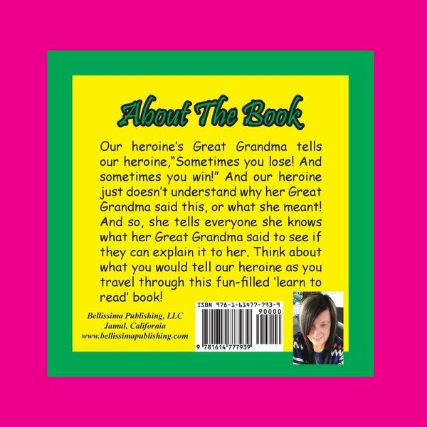 Our heroine wonders about what her great grandma means when she tells her, "Sometimes you lose! And sometimes you win!" And so, she goes about telling everyone she knows what her great grandma said to see if they can tell her what her great grandma meant. (And she begins with her friend, the elephant!) Think about what you would tell our heroine as you go traveling through this fun, 'learn to read' book that is filled with word recognition, and word repetition and rhyme, all of which will help you build your reading word vocabulary and improve your reading skills! Written by the award winning author, attorney and former teacher, Penelope Dyan, who has two of her 'learn to read' books in the Saison Poetry Library, Level 5, in the Royal Festival Hall, South Bank Centre, London, UK, chosen by the UK Arts Council, this book is meant to show kids they can have fun with learning; because (as everyone knows) if kids don't have fun learning, they won't love to learn! And as an added bonus (of fun and learning) kids can go to the Bellissimavideo YouTube channel; and they can watch the free, fun music video that goes with this book! And then they can have even more learning fun!