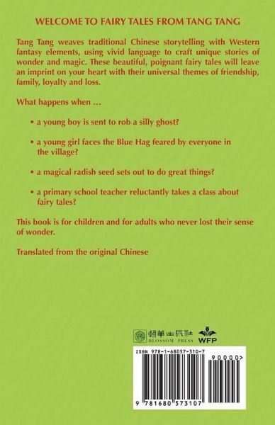 Welcome to Fairy Tales from Tang Tang Tang Tang weaves traditional Chinese storytelling with Western fantasy elements, using vivid language to craft unique stories of wonder and magic. These beautiful, poignant fairy tales will leave an imprint on your heart with their universal themes of friendship, family, loyalty and loss. What happens when ...a young boy is sent to rob a silly ghost? a young girl faces the Blue Hag feared by everyone in the village? a magical radish seed sets out to do great things? a primary school teacher reluctantly takes a class about fairy tales? This book is for children and for adults who never lost their sense of wonder. Translated from the original Chinese